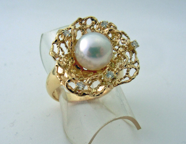 パールの周りにk18でレース状に華麗に包んだ指輪です。